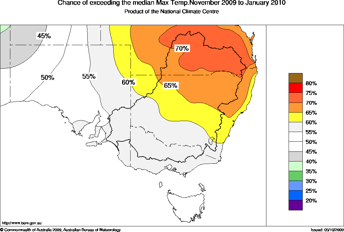 More information on this outlook is available Monday to Friday from 9.00am to 5.00pm local time by contacting the Bureau's Climate Services sections in Queensland, NSW, SA, Victoria and Tasmania at the following numbers: