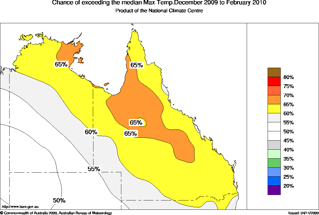 Northern Aust Seasonal Temperature Outlook: probabilities for Summer 2009/2010, issued 24th November 2009