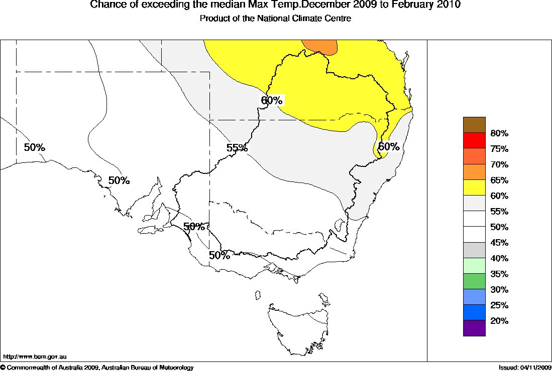 Southeastern Aust Seasonal Temperature Outlook: probabilities for Summer 2009/2010, issued 24th November 2009