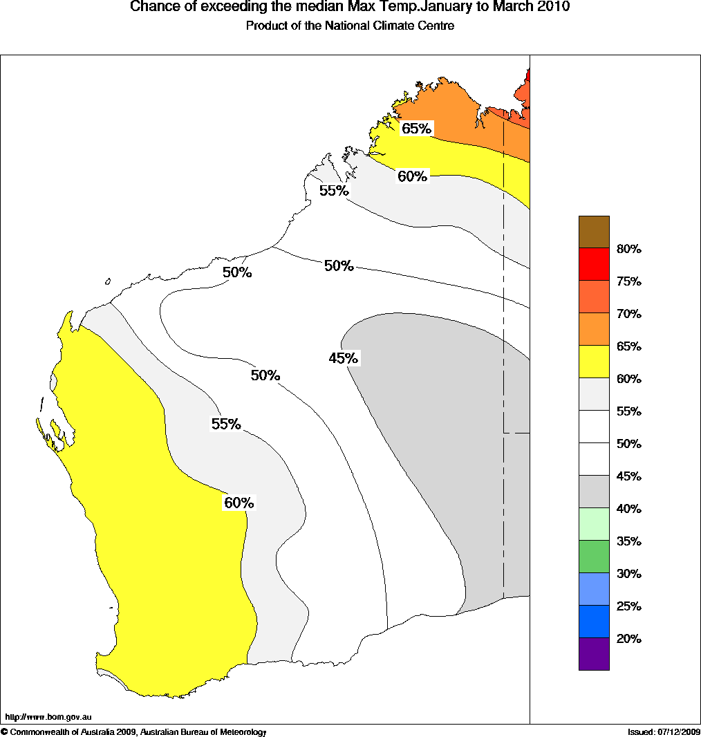 More information on this outlook is available from 8.30am to 4.30pm (WST) Monday to Friday by contacting the Climate Services Centre in the Bureau's Perth Office: (08) 9263 2222.