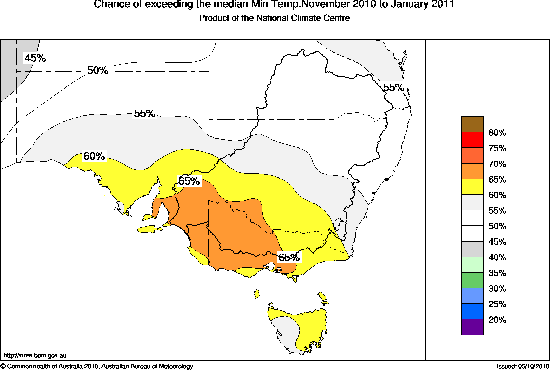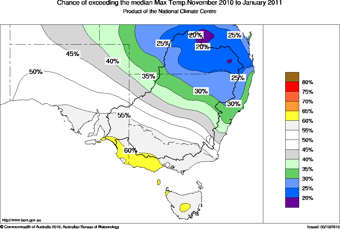 Southeastern Aust Seasonal Temperature Outlook: probabilities for November 2010 to January 2011, issued 26th October 2010
