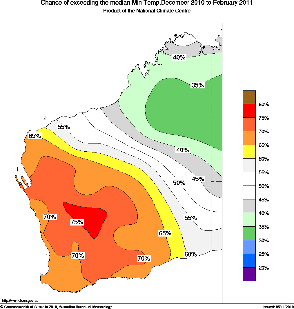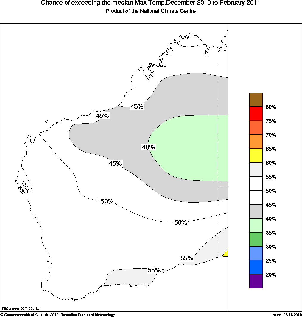 More information on this outlook is available from 8.30am to 4.30pm (WST) Monday to Friday by contacting the Climate Services Centre in the Bureau's Perth Office: (08) 9263 2222.