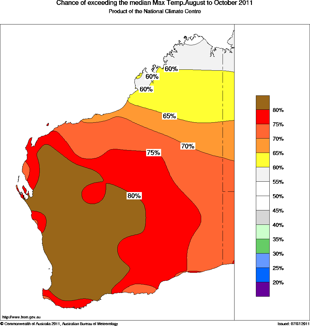 More information on this outlook is available from 8.30am to 4.30pm (WST) Monday to Friday by contacting the Climate Services Centre in the Bureau's Perth Office: (08) 9263 2222.