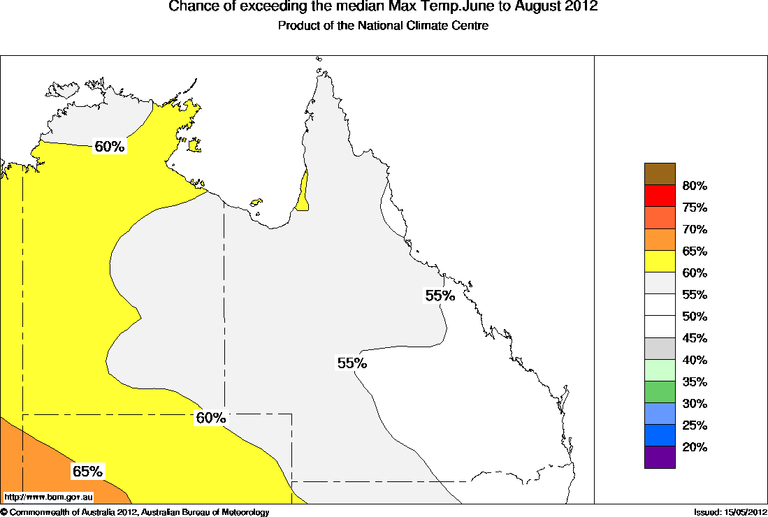 More information on this outlook is available by contacting the Bureau's Climate Services sections in Queensland and the Northern Territory at the following numbers: