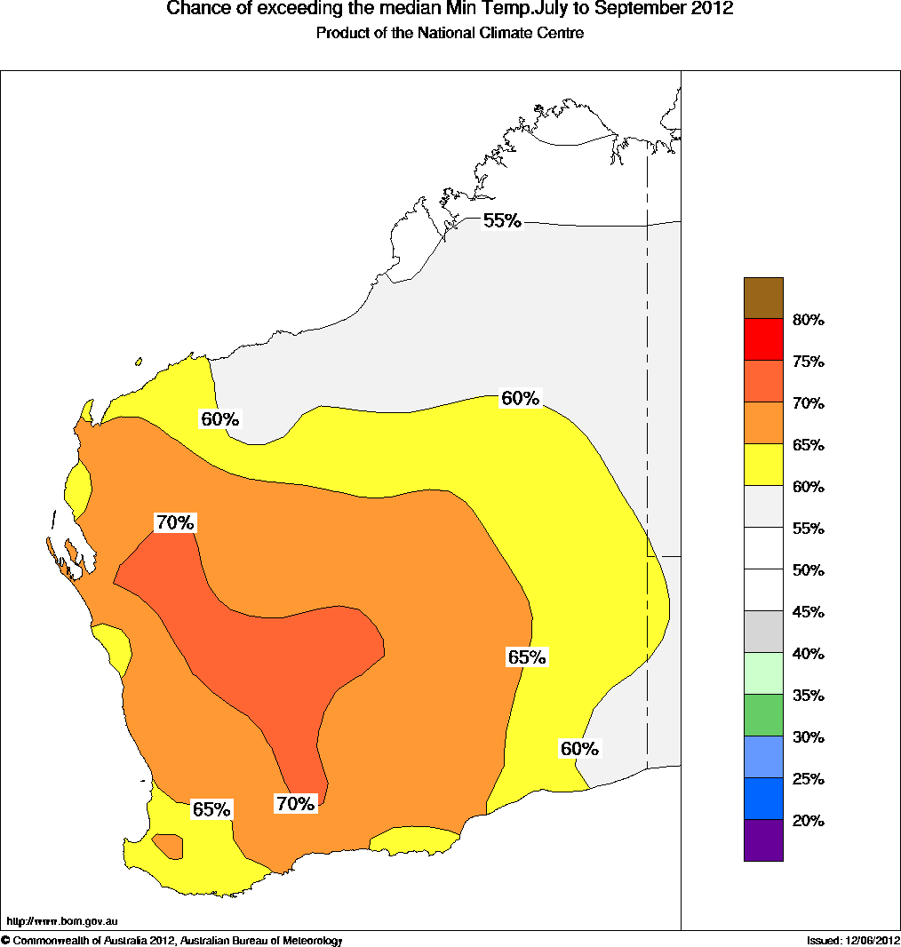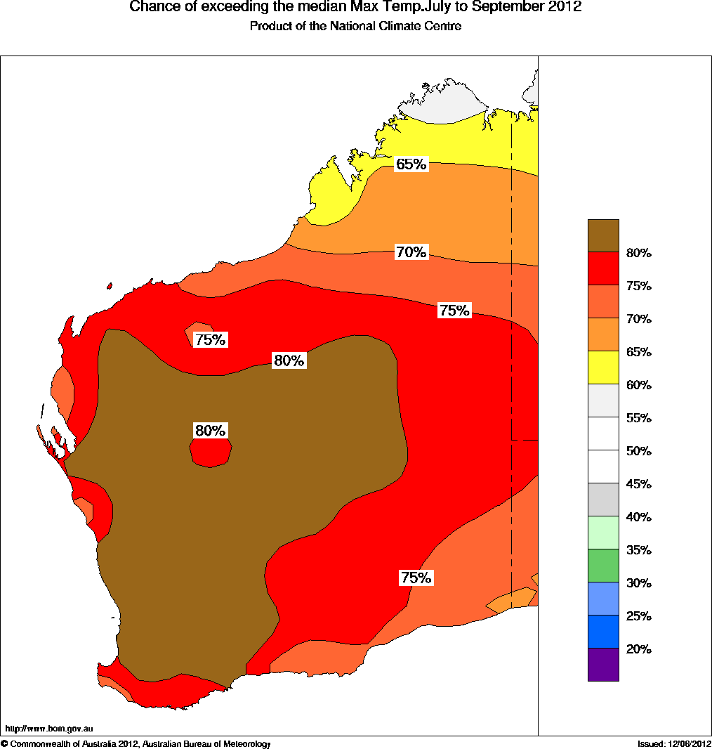 WA Seasonal Temperature Outlook: probabilities for July to September 2012, issued 20th June 2012