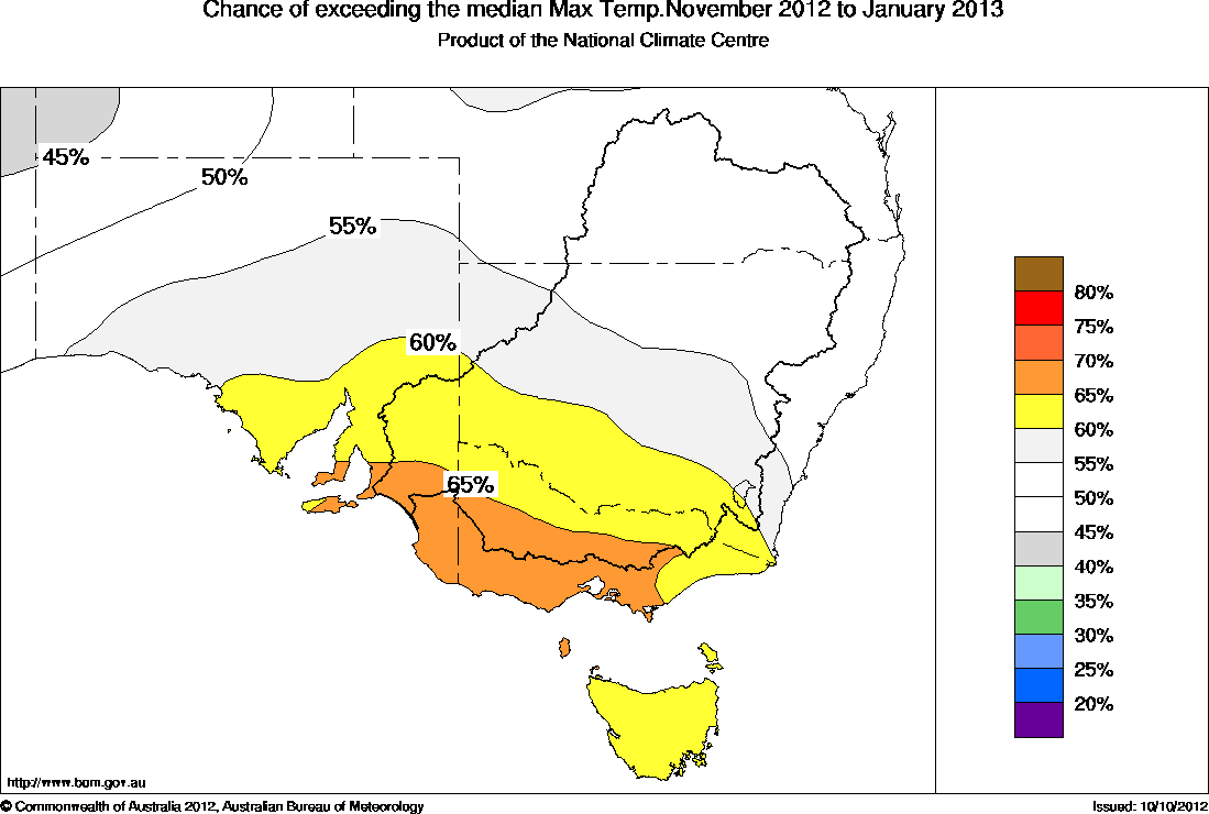 Southeastern Aust Seasonal Temperature Outlook: probabilities for November 2012 to January 2013, issued 24th October 2012