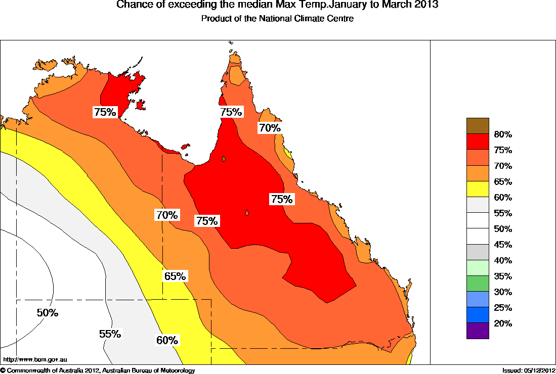 The northern Australian outlook averaged over January to March 2013 shows that: