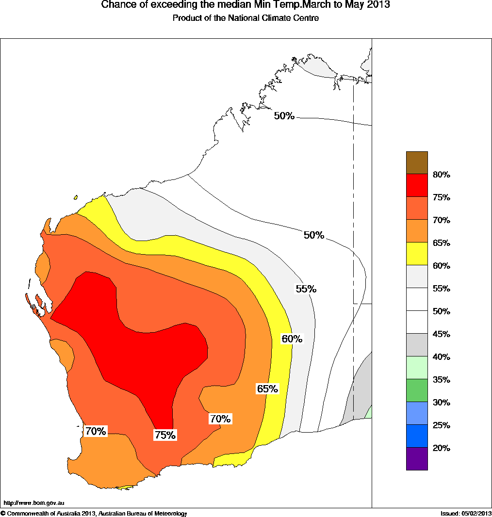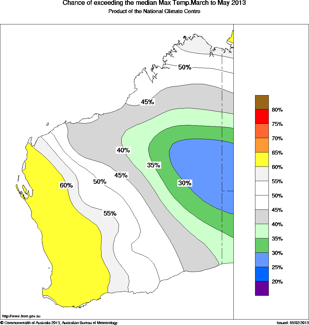 WA Seasonal Temperature Outlook: probabilities for Autumn 2013, issued 20th February 2013