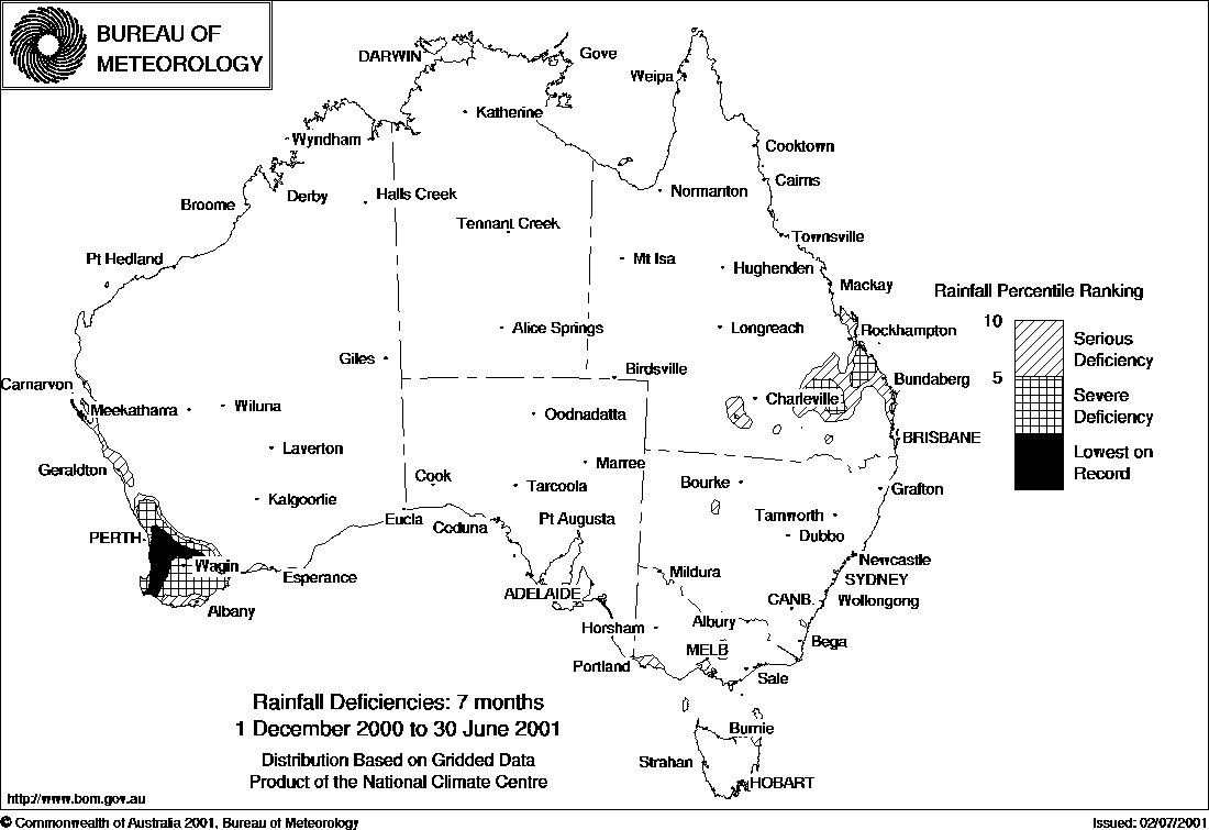 Rainfall deficiency maps for standard periods