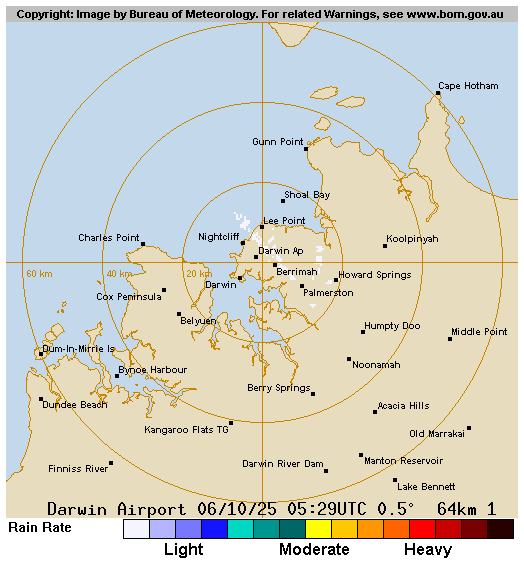 Bureau Home > Radar Images > 64 km Darwin Airport Radar Loop
