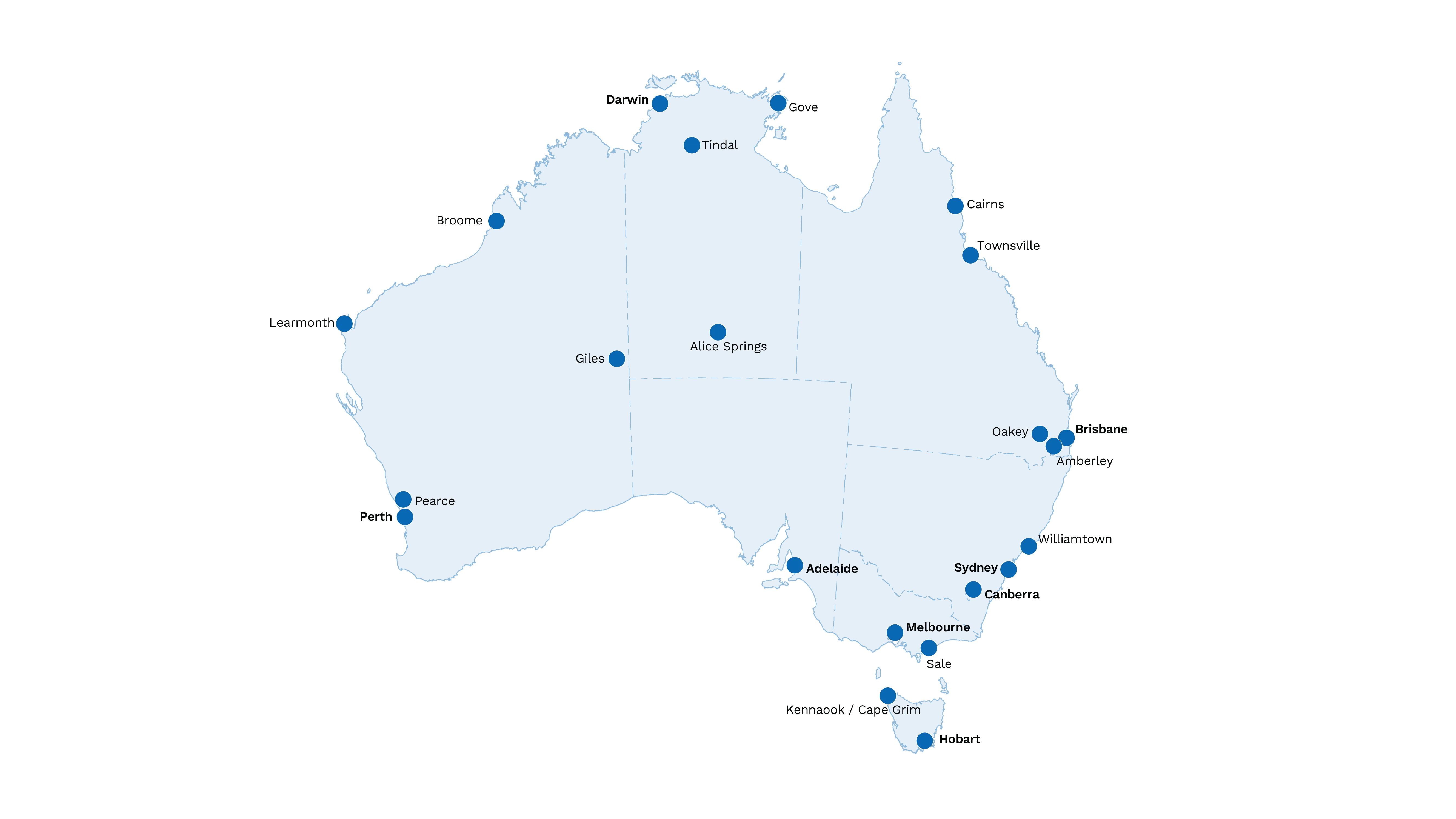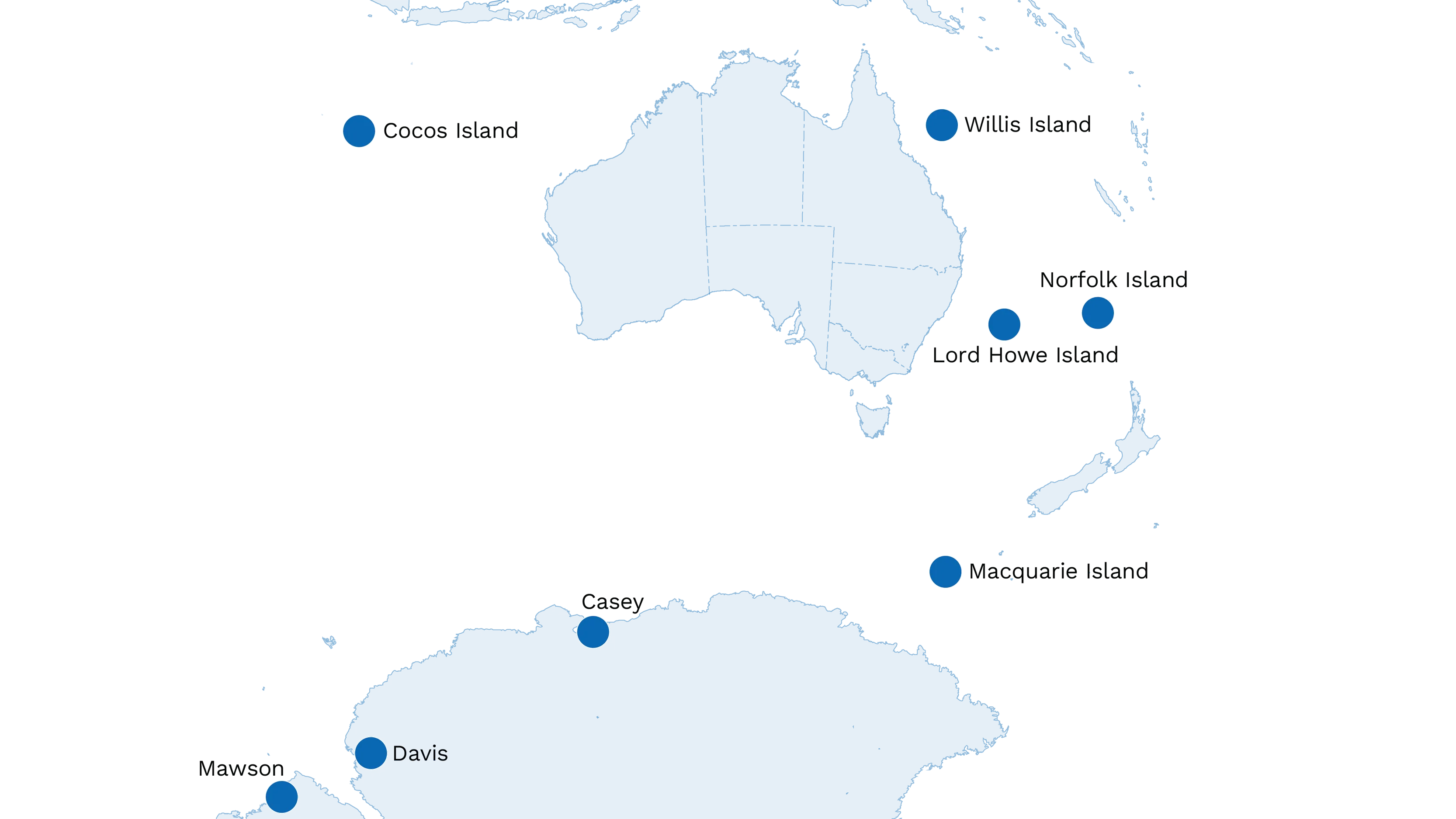 Maps of staffed Bureau workplaces Enlarge image Download image Close Our staffed workplaces across Australia Enlarge image Download image Close Our staffed workplaces in the surrounding region and Antarctica Credit: Royal Australian Navy frigate HMAS Parramatta courtesy of Australian Government Department of Defence