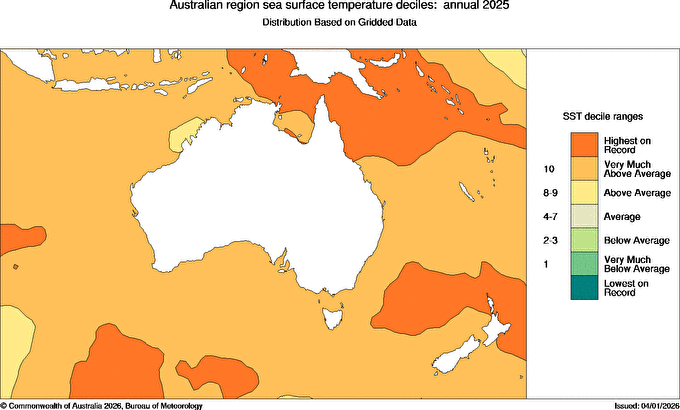 The Annual Climate Statement 2025 is the Bureau's official record of Australia's weather and climate for 2025. It includes information on temperature, rainfall, water resources, oceans, atmosphere and notable weather events. It describes some of the key climate features and climate indicators for the year.