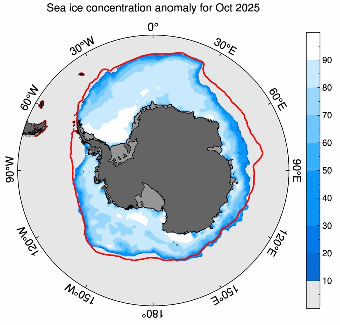 The Southern Annular Mode was positive from March to August, and negative from January to February and for most of September to December. A strong negative Indian Ocean Dipole (IOD) event lasted from late July to early December. In the Pacific, weak La Niña conditions emerged during summer 2024–25 and again in October, continuing until 2026.
