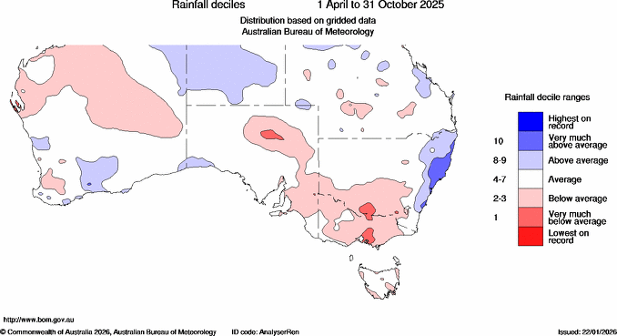 - Rainfall was below average for most of Tasmania, Victoria and South Australia, much of inland New South Wales and large parts of southern Western Australia.