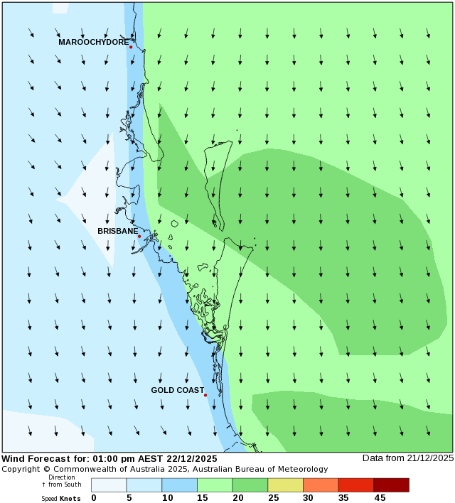 Forecast for 14:00 AEDT on Monday 22 December 2025