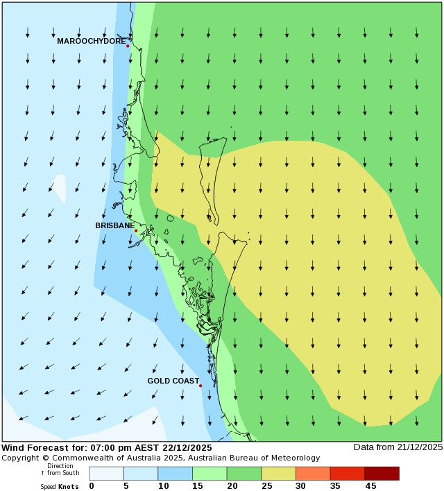 Forecast for 20:00 AEDT on Monday 22 December 2025