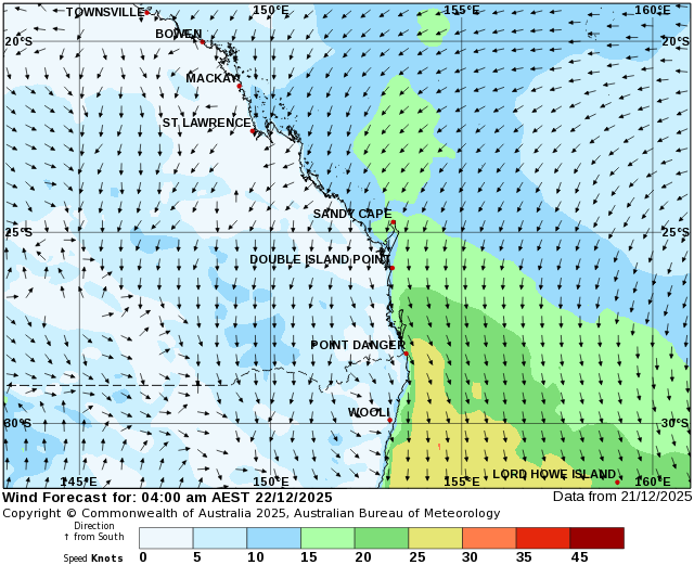 Forecast for 05:00 AEDT on Monday 22 December 2025