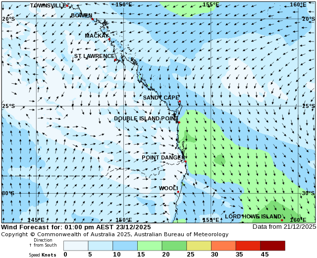 Forecast for 14:00 AEDT on Tuesday 23 December 2025