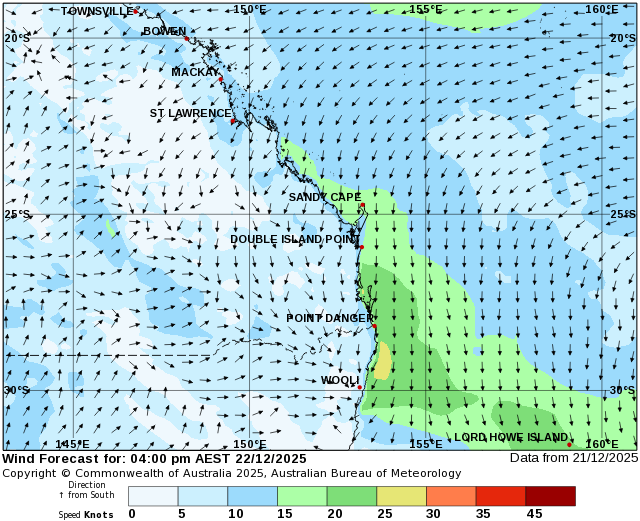 Forecast for 17:00 AEDT on Monday 22 December 2025
