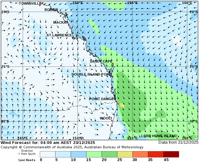 Forecast for 05:00 AEDT on Tuesday 23 December 2025