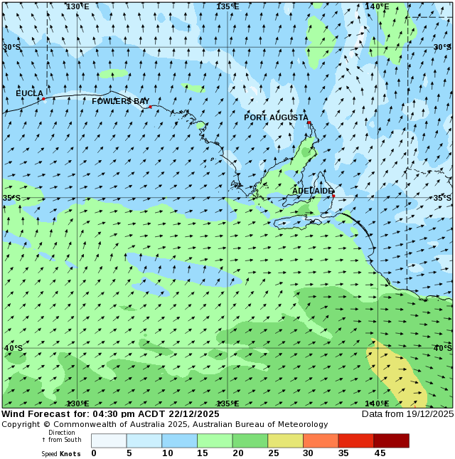 Forecast for 16:30 ACDT on Monday 22 December 2025