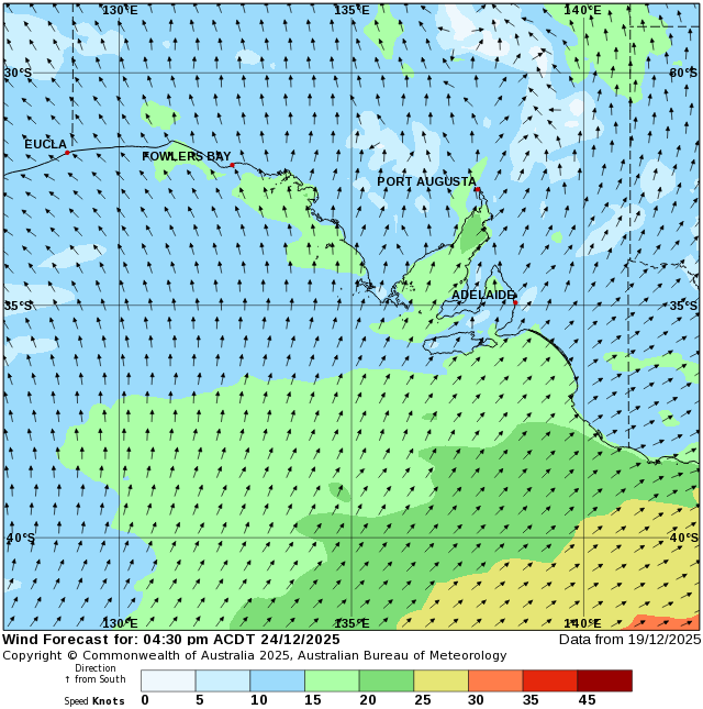 Forecast for 16:30 ACDT on Wednesday 24 December 2025