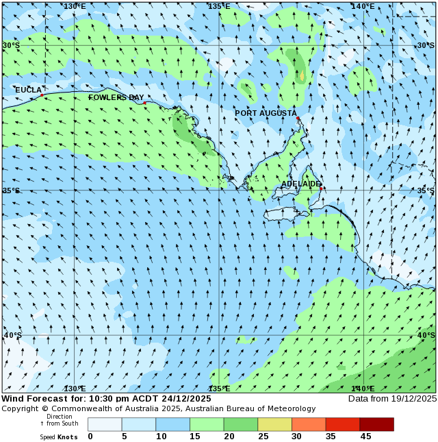 Forecast for 22:30 ACDT on Wednesday 24 December 2025