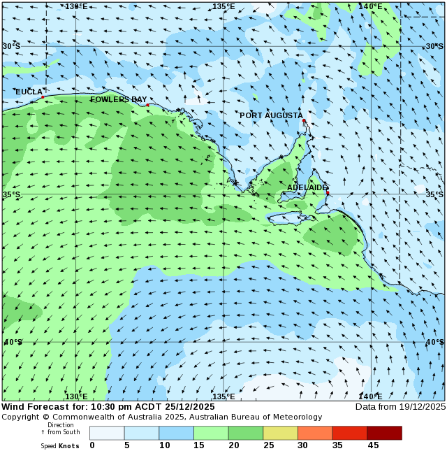 Forecast for 22:30 ACDT on Thursday 25 December 2025