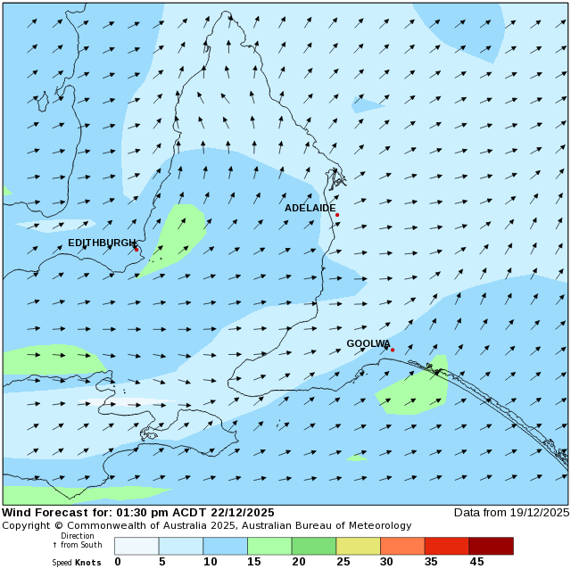 Forecast for 13:30 ACDT on Monday 22 December 2025