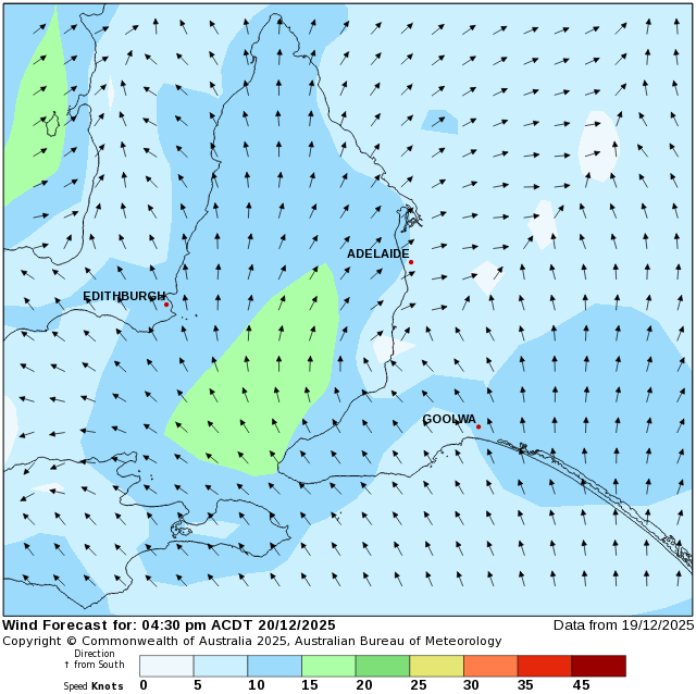 Forecast for 16:30 ACDT on Saturday 20 December 2025