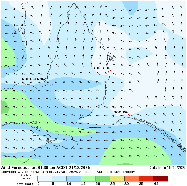 Forecast for 01:30 ACDT on Sunday 21 December 2025