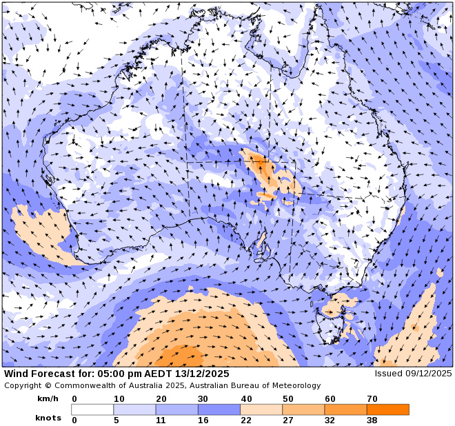 Forecast for 17:00 AEDT on Saturday 13 December 2025