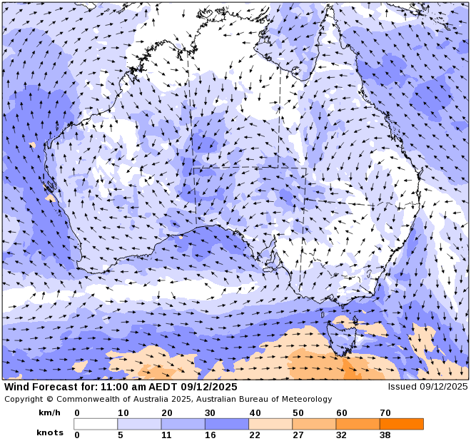 Forecast for 11:00 AEDT on Tuesday 9 December 2025
